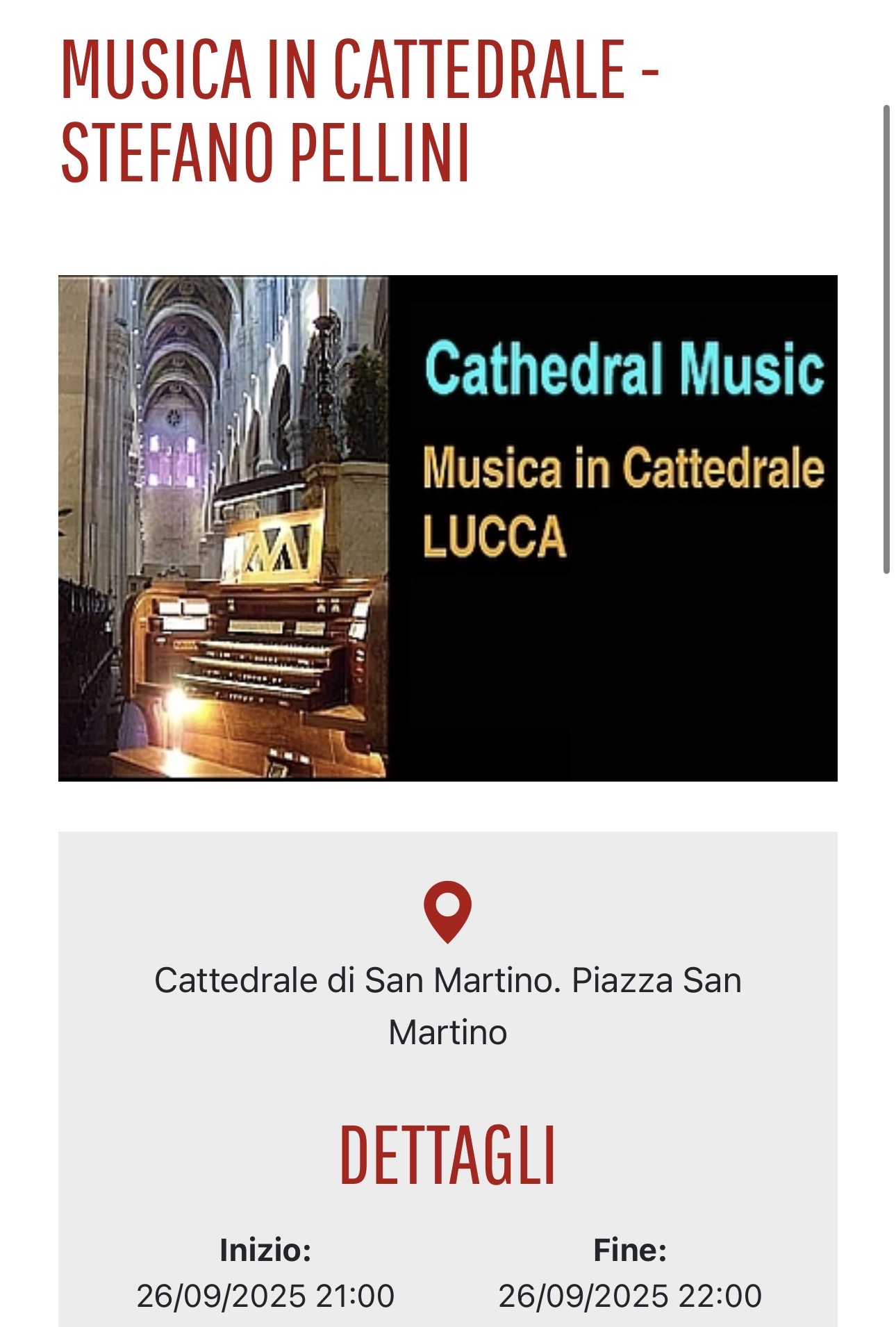 Venerdì 26 settembre 2025, ore 21 Lucca, Cattedrale di San Martino Musiche di Bach, Händel, Elgar
